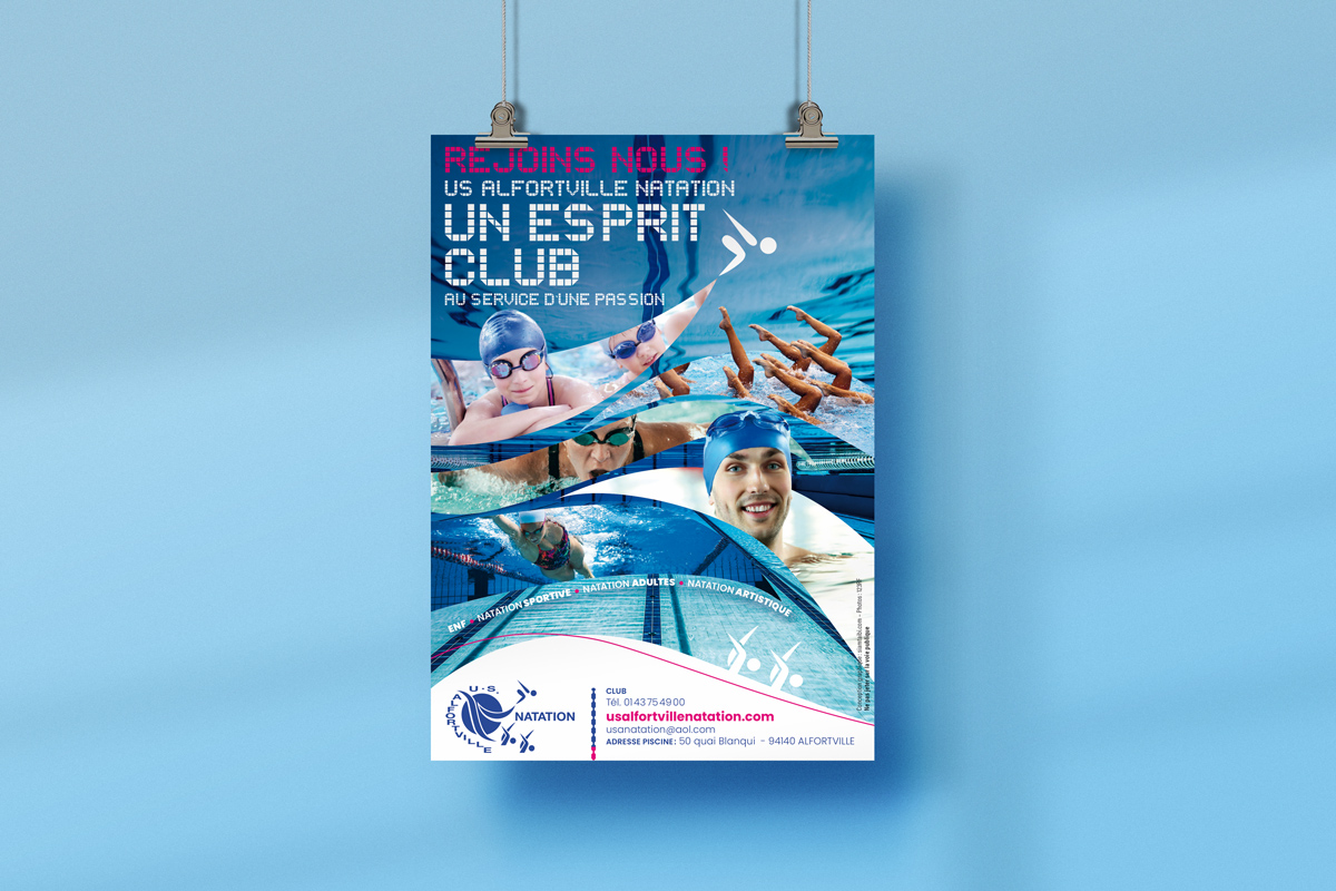 À l’occasion de la rentrée des clubs de la ville d’Alfortville, l’US Alfortville Natation m’a confié la mission de créer une affiche pour promouvoir et communiquer autour de leur club.